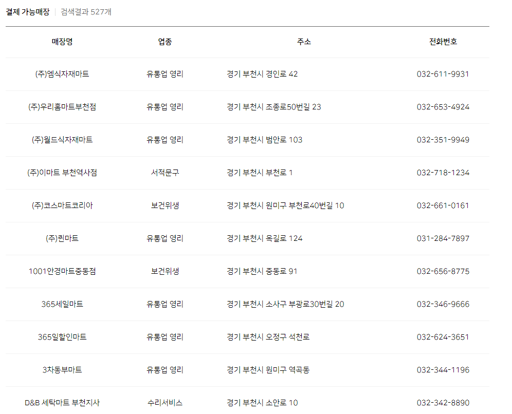 부천시 재난지원금 사용처 (지역화폐 사용처) 마트