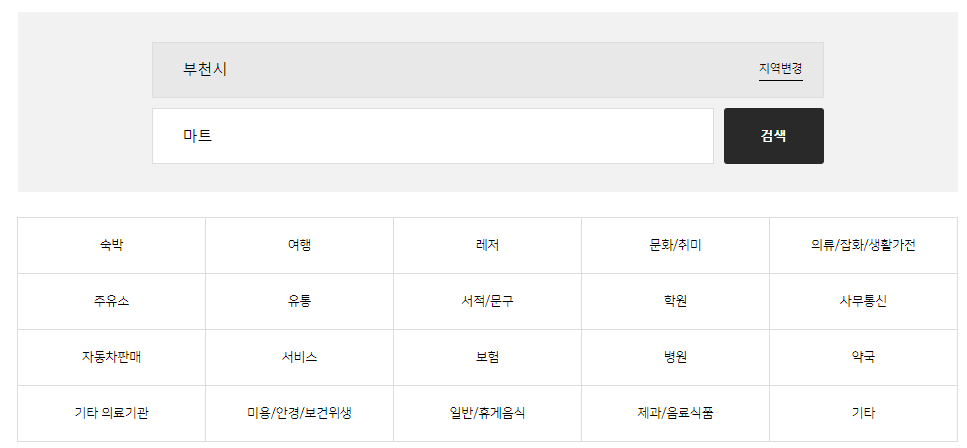 | E-편한할인마트 | 유통업 영리 | 경기 부천시 원미구 역곡로20번길 86 | 032-342-5949 |