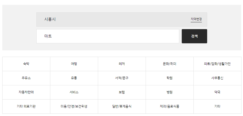 | 통큰할인마트 | 유통업 영리 | 경기 시흥시 큰솔공원로 | 031-499-5257 |