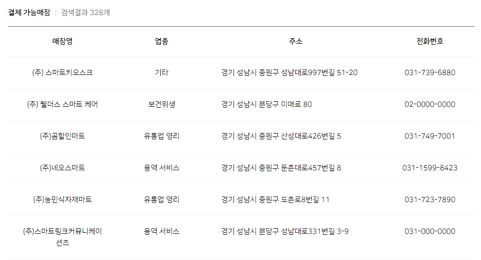 성남시 재난지원금 사용처 (지역화폐 사용처) 마트